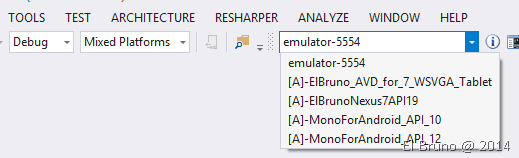 Ahora ya podemos volver a nuestro proyecto de Xamarin para Android y … cuando seleccionamos el device o emulador para probar, ya tenemos disponible el que creamos en pasos anteriores.
