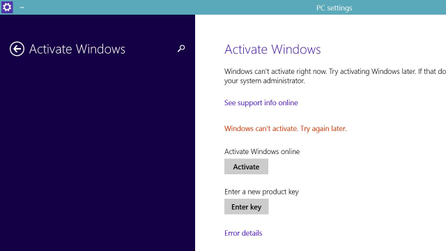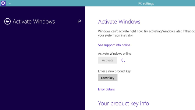 I’ve done an upgrade in my old Windows 8 Enterprise to Windows 10 Technical Preview. After this I get the annoying message asking me to activate Windows license. For me, everything should be allright, however the Product Key in my SO is my Windows 8’s one, so it is impossible to activate it in Windows 10.
