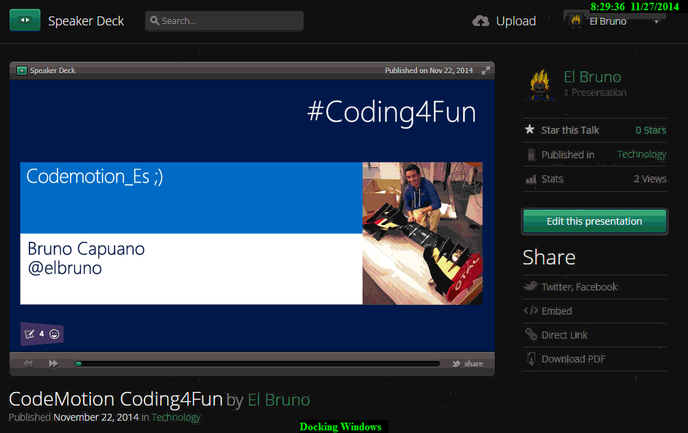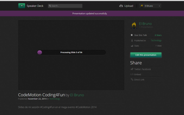 Hoy revisando parte de las presentaciones que me perdí en el CodeMotion, llego a Speader Desk. Y claro, como culo inquieto que soy decidí subir las slides de mi presentación de CodeMotion y ver que me ofrece.