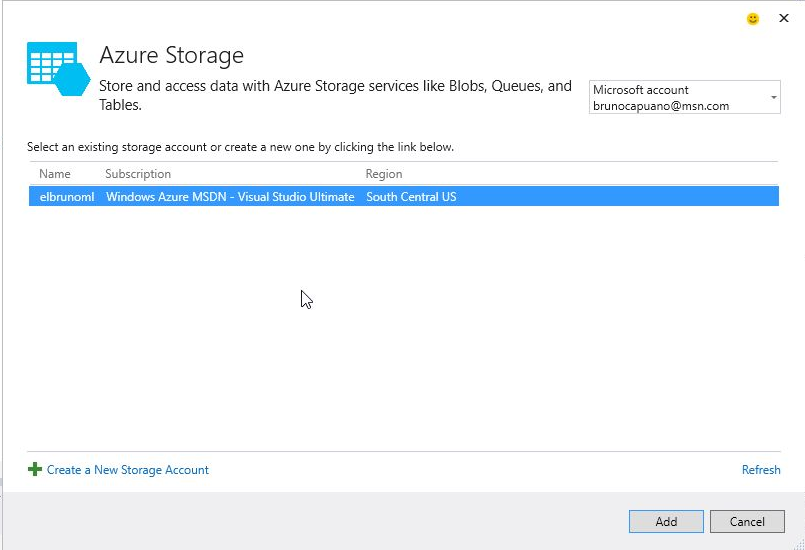 If for example you select an Azure Storage, first thing we need to do is login credentials from Azure to be able to select the same. In this case we can see proof of Machine Learning in a trial of Azure account.
