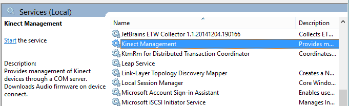Kinect Monitor (KinectMonitor) failed to start. Verify that you have sufficient privileges to start system services
