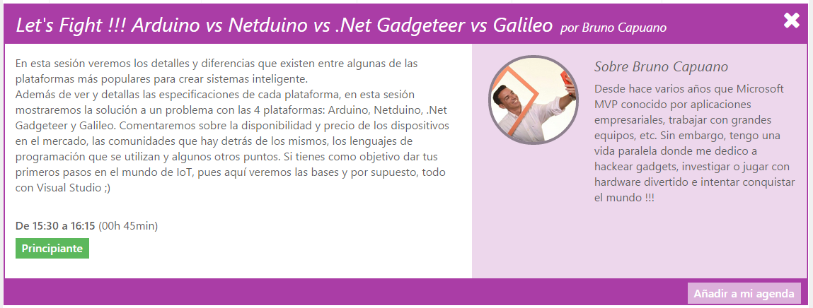 Agenda: https://www.desarrollaconmicrosoft.com/Dotnetspain2015/Agenda?day=28