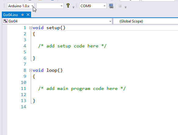Por ejemplo, cuando creamos un nuevo proyecto con Visual Micro, veremos que en la barra de herramientas tenemos la opción de seleccionar la versión del IDE de Arduino (por defecto 1.0.X), pero claro ahora es momento de actualizar a la nueva versión 1.6.X