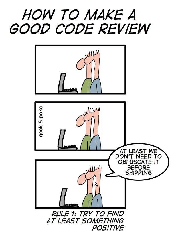 Source: http://geekandpoke.typepad.com/geekandpoke/2010/11/how-to-make-a-good-code-review.html