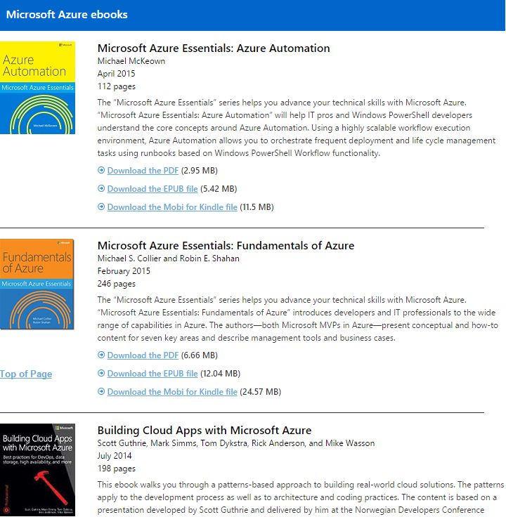 Pues bien, es solo cuestíón de ir a la página oficial de MS Press y en la misma seleccionar la opción “Free ebooks”. Esta opción nos llevará a una sección especial de Microsoft Virtual Academy dedicada a libros técnicos. Si por ejemplo, filtramos por Azure, veremos que tenemos 6 libros dedicados al tema,