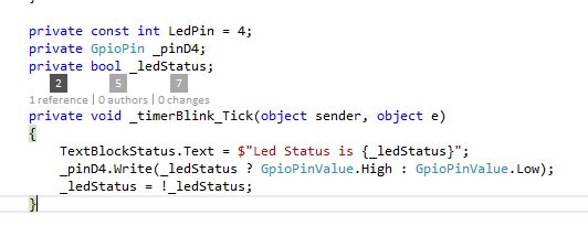 Una vez agregada la referencia podemos agregar el código necesario para interactuar con el LED, el mismo queda similar al siguiente