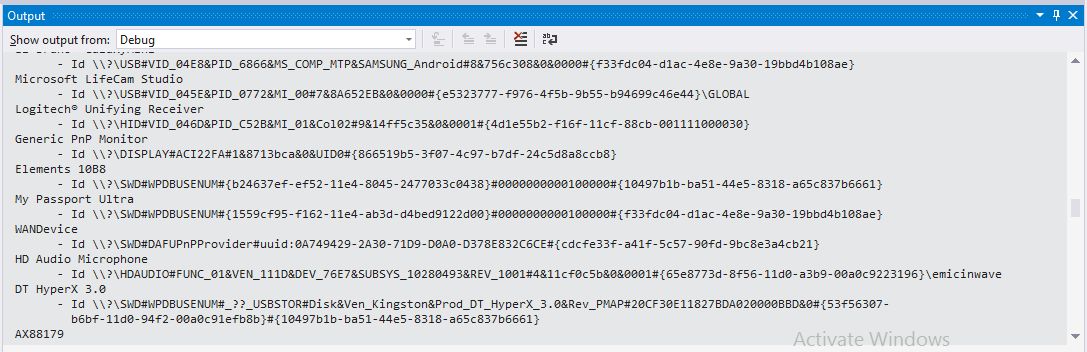 Además del nombre es importante tener en cuenta la propiedad ID que es la que nos muestra el path completo de acceso al device. Por ejemplo, si analizamos el 6to elemento correspondiente al mouse podemos inferir los valores de Vendor Id y Product Id
