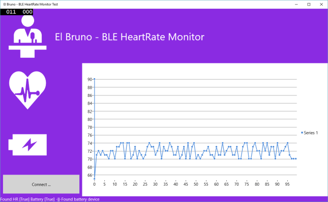 Esto ya nos permite tener una app donde se muestren los valores del Heart Rate y la carga de la batería.