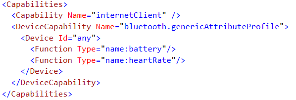 En el post anterior vimos cómo crear una Windows Universal App, y configurar la misma para sacar información de las pulsaciones. Si modificamos el manifiesto del proyecto, podemos además mostrar información de la batería del dispositivo. Para esto agregamos la función battery