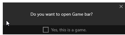 – Presionar las teclas WIN + G y veremos una confirmación para abrir la Game Bar. Lo importante es confirmar que esta app es un juego.