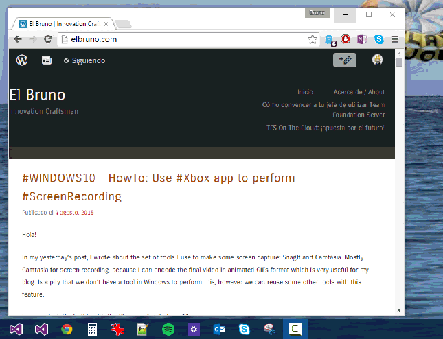 – Windows 10, Usar la app de Xbox para Screen Recording https://elbruno.com/2015/08/04/windows10-howto-usar-la-app-de-xbox-para-grabar-un-screenrecording/