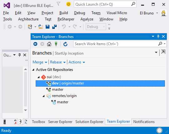 Display in Visual Studio 2015 title bar, the name of the current GIT branch where we are working