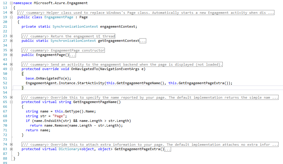 Ahora bien, el tema estaba en cómo implementar el sistema de notificaciones de una Page en un User Control. Decompilando el ensamblado de Microsoft.Azure.MobileEngagement, podemos ver lo siguiente: