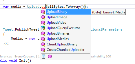 TweetInvi posee una clase Upload que nos permite adjuntar imagenes, videos o archivos binarios y luego utilizar el resultado de esta operación en la publicación de un tweet.