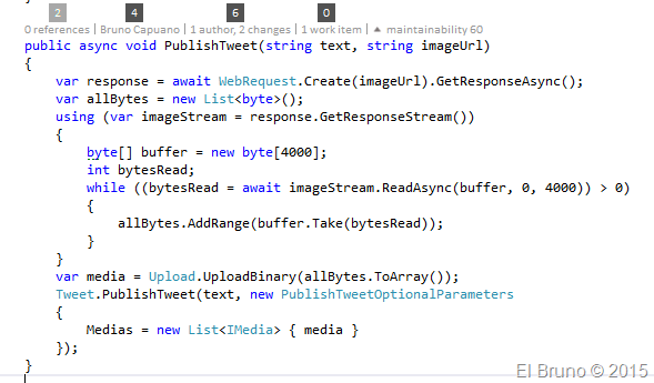 El código fuente en GitHub https://github.com/elbruno/Blog/tree/master/Twitter