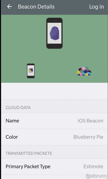 Esto es porque no estoy utilizando beacons reales para las pruebas, sino el emulador de beacons que está disponible en la app de Estimote para iOS. En el caso de un virtual beacon: