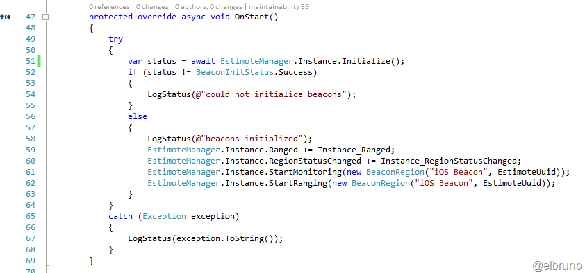 Con esta información ya podemos inicializar nuestra app para que detecte beacons (lineas 61 y 62)