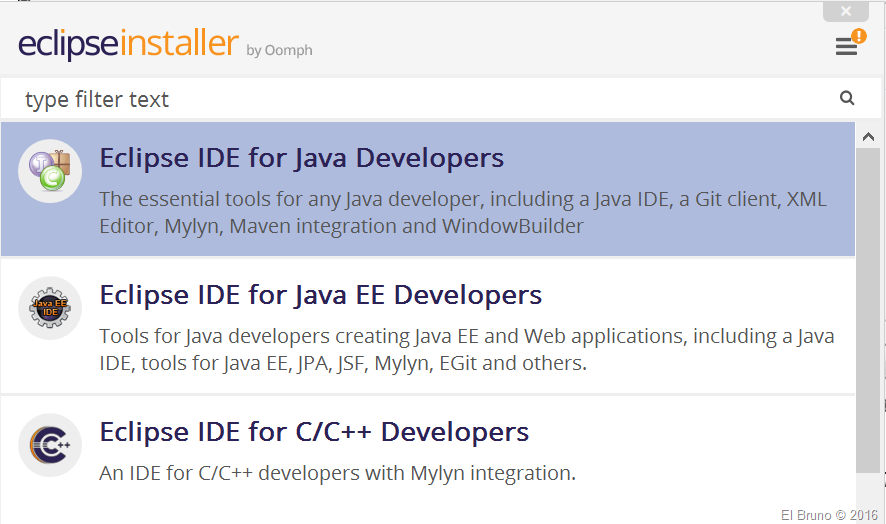 First we must download a version of Eclipse Luna. Choose the option for Java Developers, in the first step of the installer.