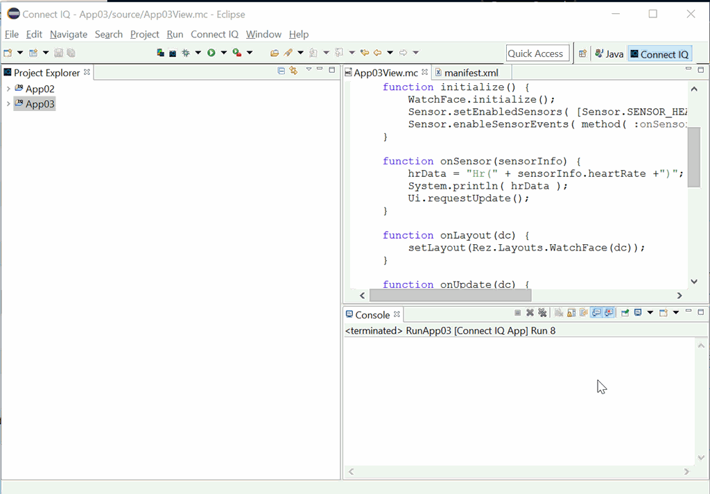 In today’s sample I’ll show how to create a WatchFace app which displays the current time and also the heart rate of the smart watch user. Most of the details will be added in the references section where you can find plenty of information on how the MonkeyC language works, or the different types of apps supported for Garmin watches.