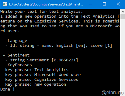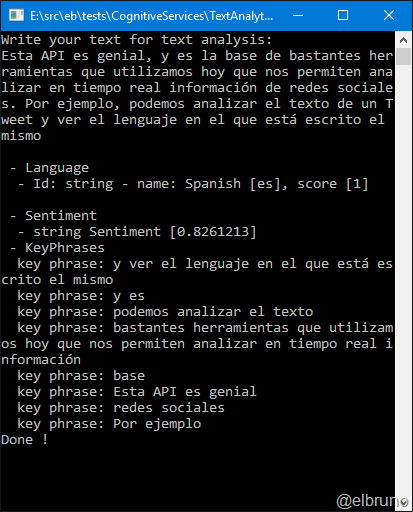 - El Bruno Text Analytics API, detección de lenguaje y sentimiento