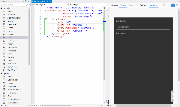 Xamarin.Forms añade una capa de abstracción en la capa de UI que nos permite definir la misma una única vez para todas las plataformas. Con la llegada de Visual Studio 2017 15.8 y Visual Studio macOS 7.6 llega la Toolbox o caja de herramientas de controles Xamarin.Forms. Esto permite arrastrar y soltar elementos desde la caja de herramientas a la zona de edición de XAML.