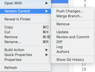 Haciendo clic derecho sobre cualquier archivo de un proyecto que use Git tendremos una nueva opción: