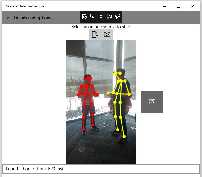The next image is the sample for Skeletal detector (as a old Kinect dev, this really makes me happy!)