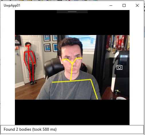 - There is also a BodyRenderer.cs class used to draw the skeletons on top of the CameraPreview Image control. It draws lines in an empty canvas.