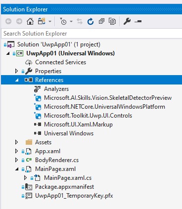 - I added the NuGet packages [Microsoft.AI.Skills.Vision.SkeletalDetectorPreview] and [Microsoft.Toolkit.Uwp.UI.Controls]
