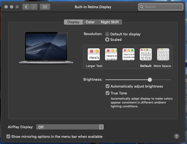 MacOS display runs at its native resolution, which is the best resolution designed for the display. To change the resolution, you need to open System Preferences and select displays. Then in the [Display section], we can change the resolutions by selecting the [Scaled] option.