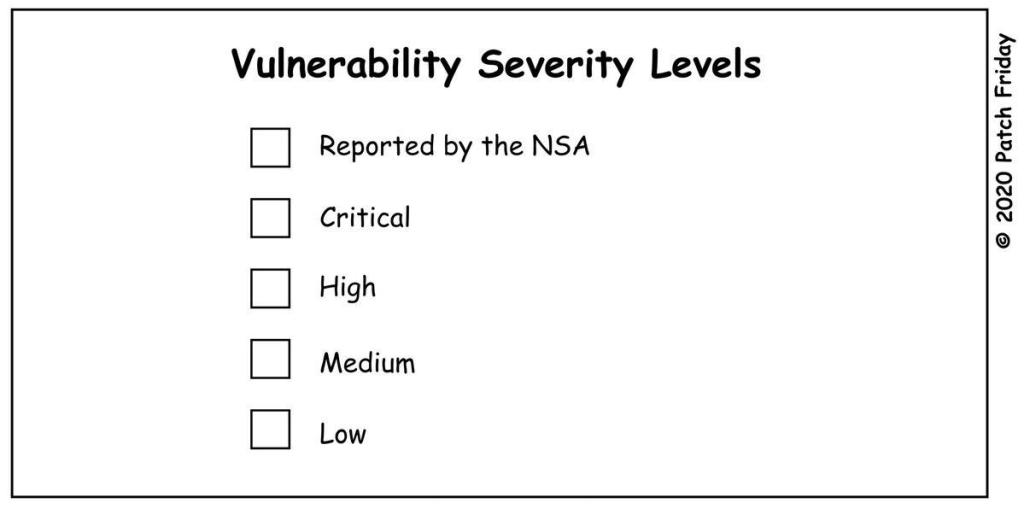 Vulnerability severity levels pic.twitter.com/7MZUs7fWaS— Patch Friday (@PatchFriday) January 17, 2020