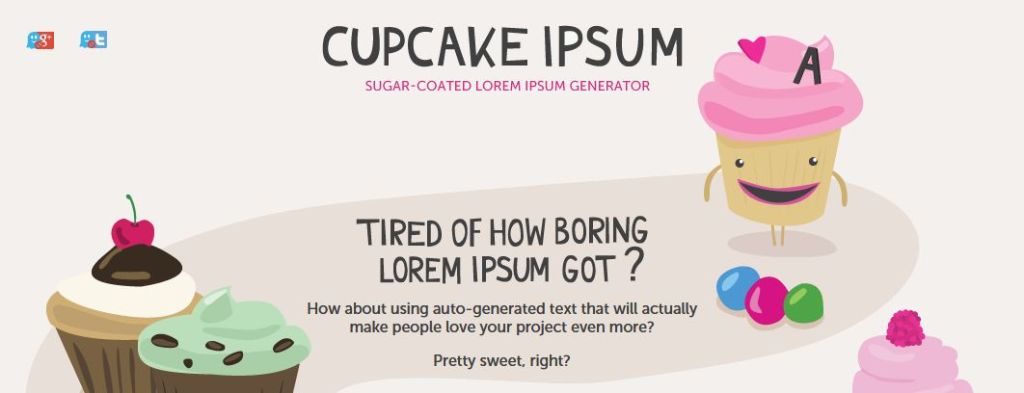 - Cupcake Ipsum, www.cupcakeipsum.com/
