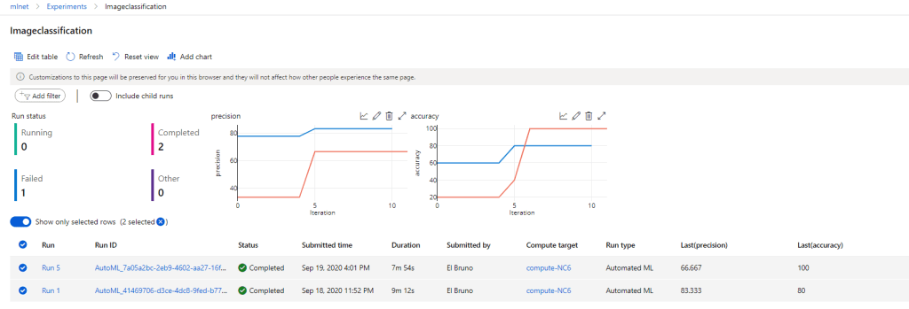 Each Model Builder Image Classification project, will trigger several Azure ML Experiments.