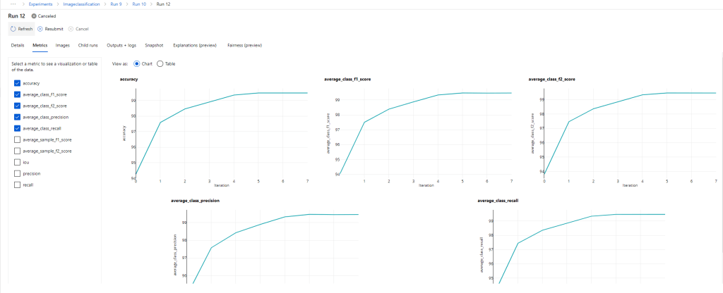 However, the experiment in charge to train the model [Run 12], got some sucess models. Acuraccy, F1 and precision were getting better