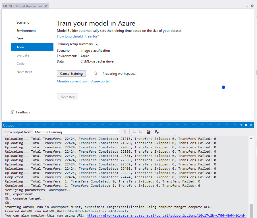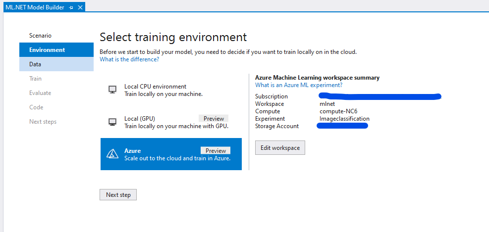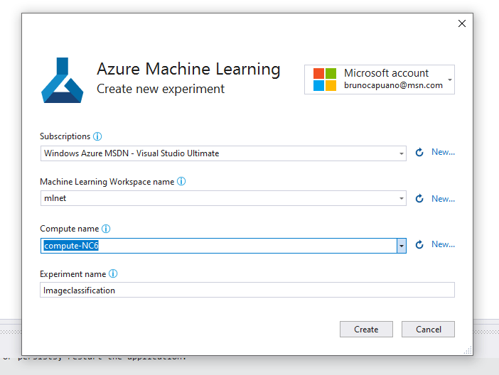 As final thought. Using Azure as the training environment in Model Builder is an amazing option. A big DataSet maybe a problem, or maybe my quota is the problem. Anyways, in smaller DataSets it worked great. I’ll keep an eye in this issue and update the blog with some news.