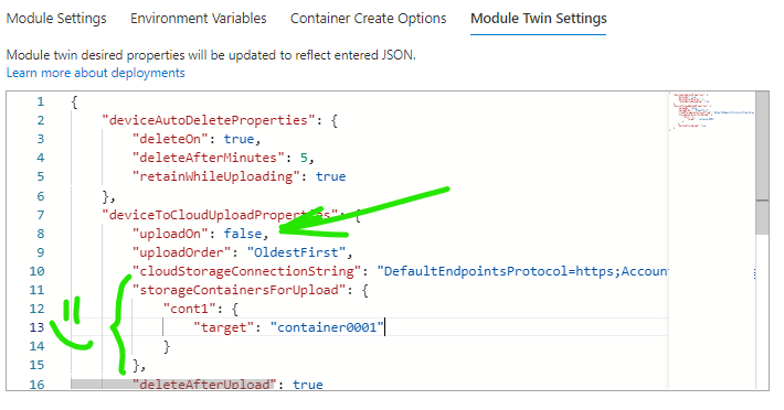 Settings / Config for the Azure Blob Storage on IoT Edge module